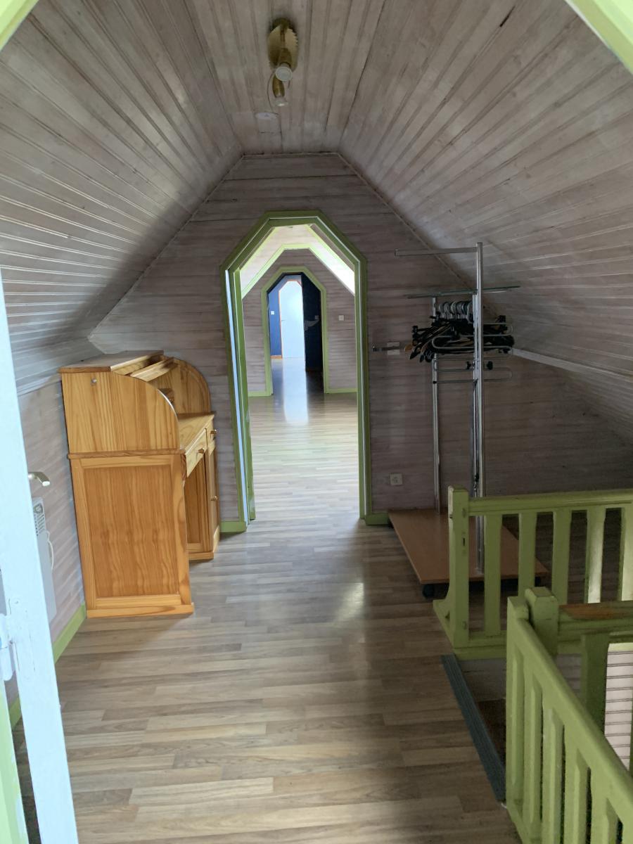 A l'étage : Le palier dessert une pièce avec cabinet de toilettes (douche, lavabo, WC), et trois pièces en enfilade avec placards et penderies.